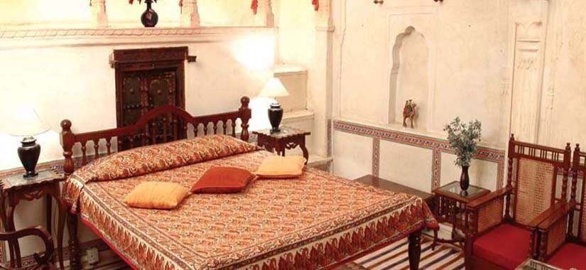 Between 1984 and 1990 they operated a small handicraft shop within the Haveli. Many of the tourists that came through suggested converting it into a Hotel. Mr. Dinesh decided to do so and after a further nine years of renovation and repair, employing local craftsmen from Shekhawati, he opened luxury hotel in Mandawa with just one room.